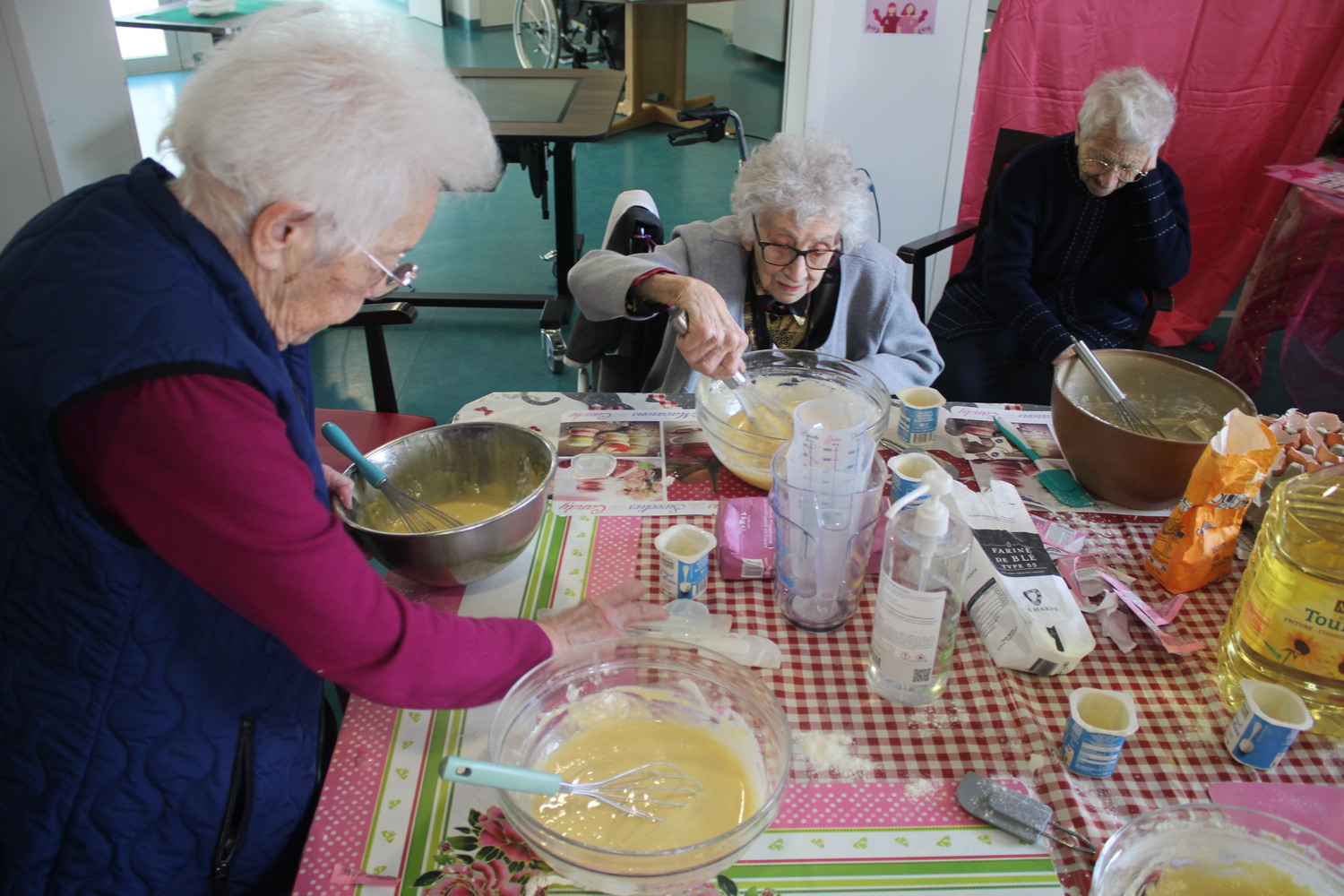 Le matin, certains résidents ont préparé avec plaisir le gâteau du jour. L’après-midi, tout le monde s’est retrouvé en salle de restauration pour un moment chaleureux et festif : chants, musique, convivialité et, bien sûr, le traditionnel soufflage de bougie.