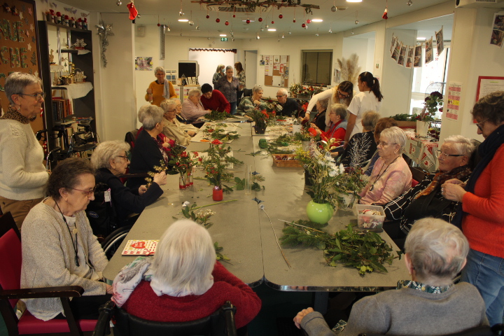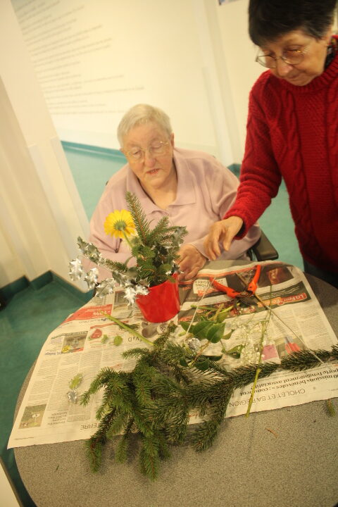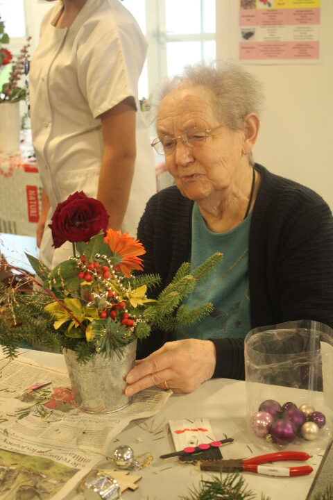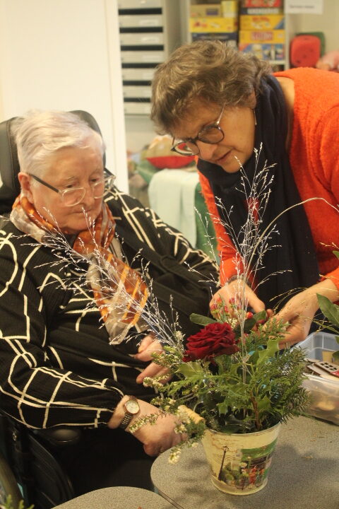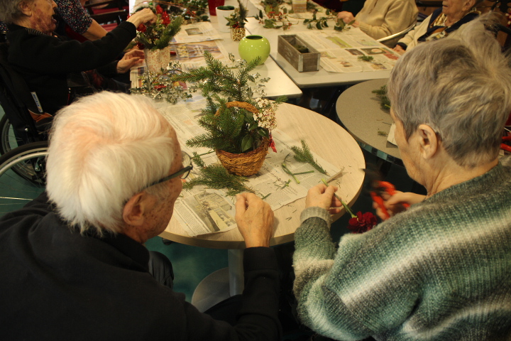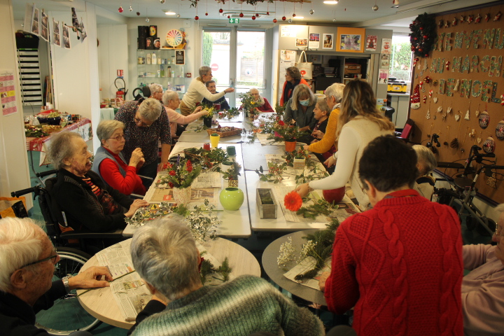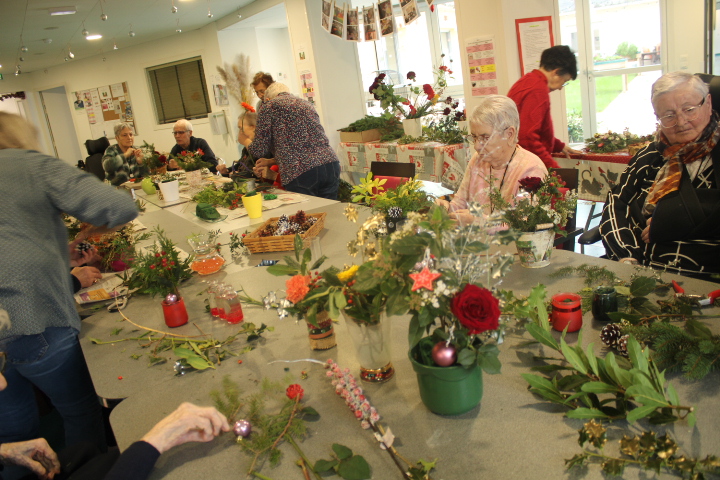 Vendredi 19 décembre, nos résidents ont participé à un atelier d’art floral animé avec l’aide précieuse de nos bénévoles. Chacun a pu laisser libre cours à sa créativité pour réaliser de magnifiques compositions, qui viennent ensuite embellir chaque quartier de notre établissement.