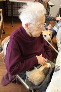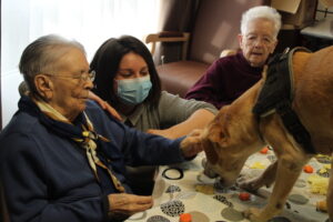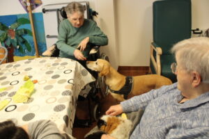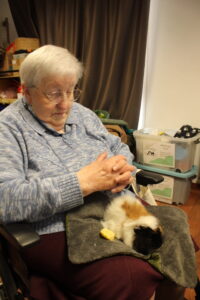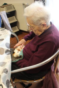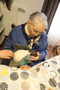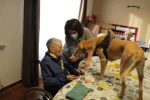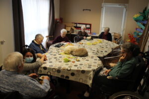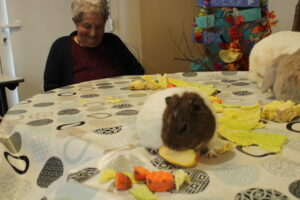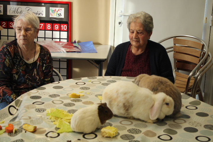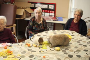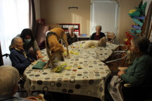 Une fois par mois, nous avons le plaisir d’accueillir Marie et ses animaux au sein de l’EHPAD. Marie est la fondatrice de l’entreprise Le plein d’ani’motions, spécialisée dans la médiation animale. Elle vient accompagnée de ses chiens, lapins, hamsters et autres compagnons à poils ou à plumes, pour partager avec nos résidents des moments de douceur et de convivialité.