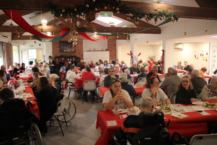 Le jeudi 18 décembre, résidents et salariés se sont réunis en salle à manger pour partager le traditionnel repas de Noël.